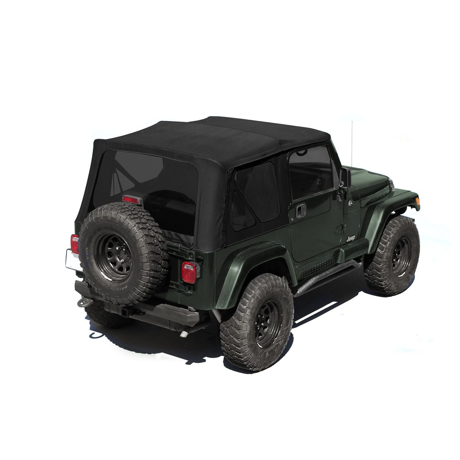 The Montana Soft Top is designed as a high-quality direct replacement for your Wrangler TJ's factory top. Simply remove the old top and slip on the new Montana Top. The Montana Soft Top features sturdy reinforced stitching on the heavy pull areas and heavy-duty 30 mil thick rolled glass windows with a 31% tint to help keep out the direct sunlight. All Montana Soft Tops are built from 20 oz. durable vinyl coated Black Diamond polyester and cotton fabric that defies the elements. All sewn seams are double-stitched using marine grade thread for superior sun and moisture resistance. Each stitched seam is literally welded shut with a durable heat seal to repel moisture while maintaining the look of the original top. Installing the Rugged Ridge Montana Top is easy with the factory original belt rail attachment method; simply tuck the skirt under the rail and go! Each Rugged Ridge Montana Soft Top is backed by an industry leading 5-year limited warranty against manufacturer defects.