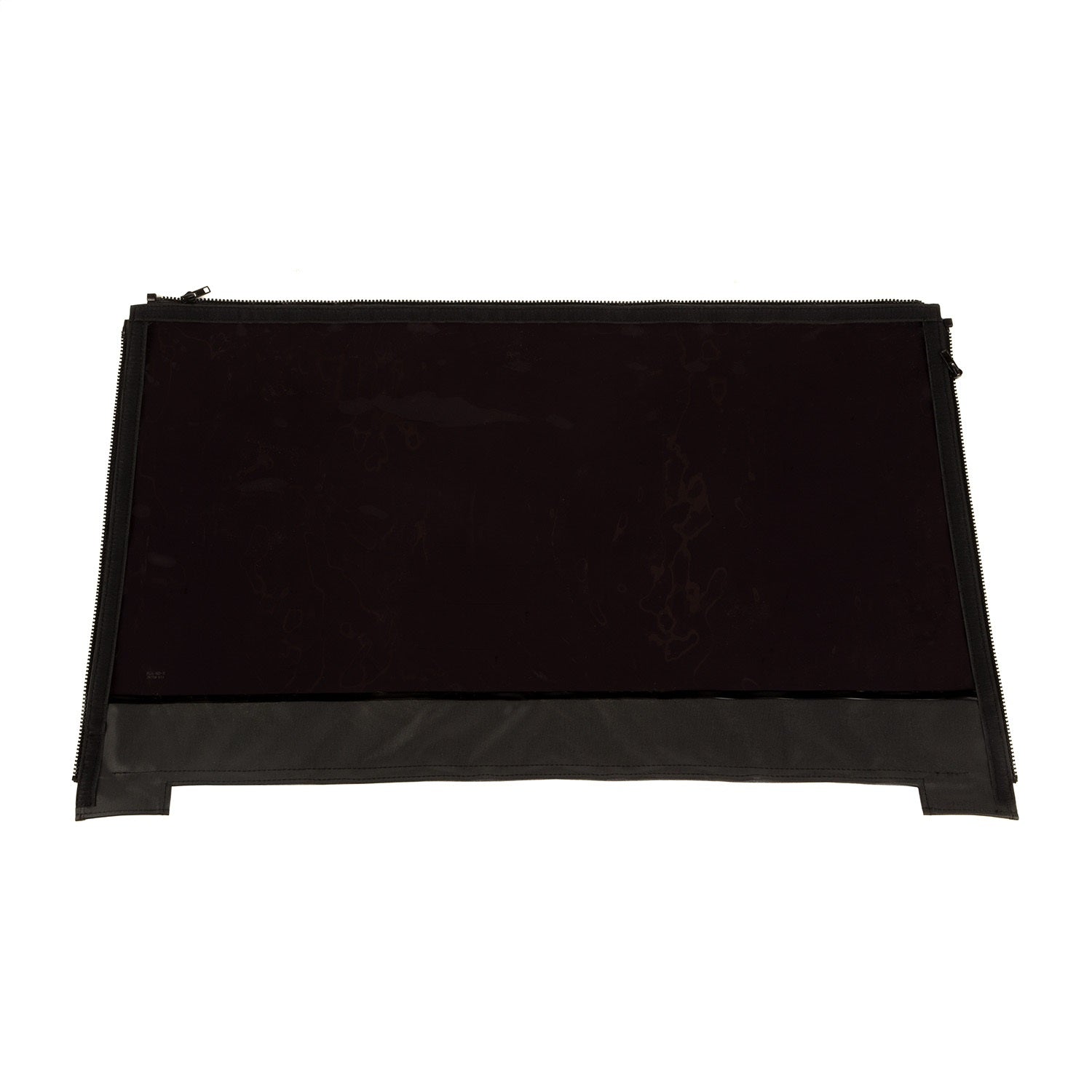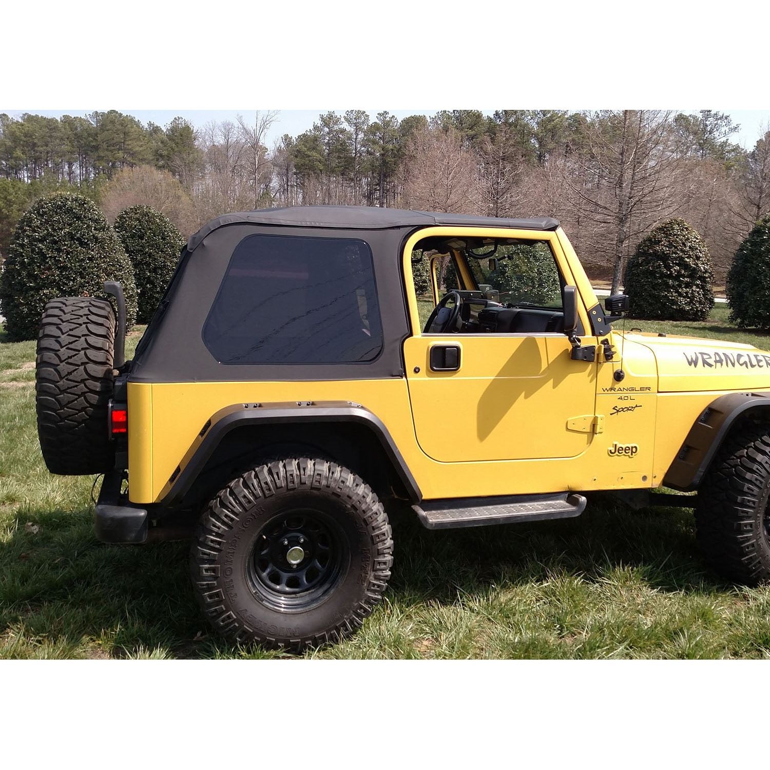 The Rugged Ridge Montana Top is the most versatile Jeep(R) soft top on the market today- combining the stunning fastback styling of a bowless top with the built-in ability to go from a fully-enclosed top to a summer brief in an instant! Best of all, no more unsightly top frame to block your view. The Montana Bowless Top fits snuggly over the factory roll bar and works with your factory door surrounds and tailgate bar, delivering a uniform air-tight fitment with an aerodynamic style all its own. Converting to a stylish summer top is as easy and unzipping the rear windows and storing them in the rear window storage fold that is designed into the top. The Montana Bowless Top is made to the same strict quality standards as our factory replacement soft tops, with reinforced stitching on heavy 'pull' areas, as well as heavy-duty 30 mil thick DOT approved 31% tint window glass, durable vinyl-coated polyester and cotton fabrics, and seams stitched entirely using marine grade thread to resist fading and deterioration from extended exposure to the elements.