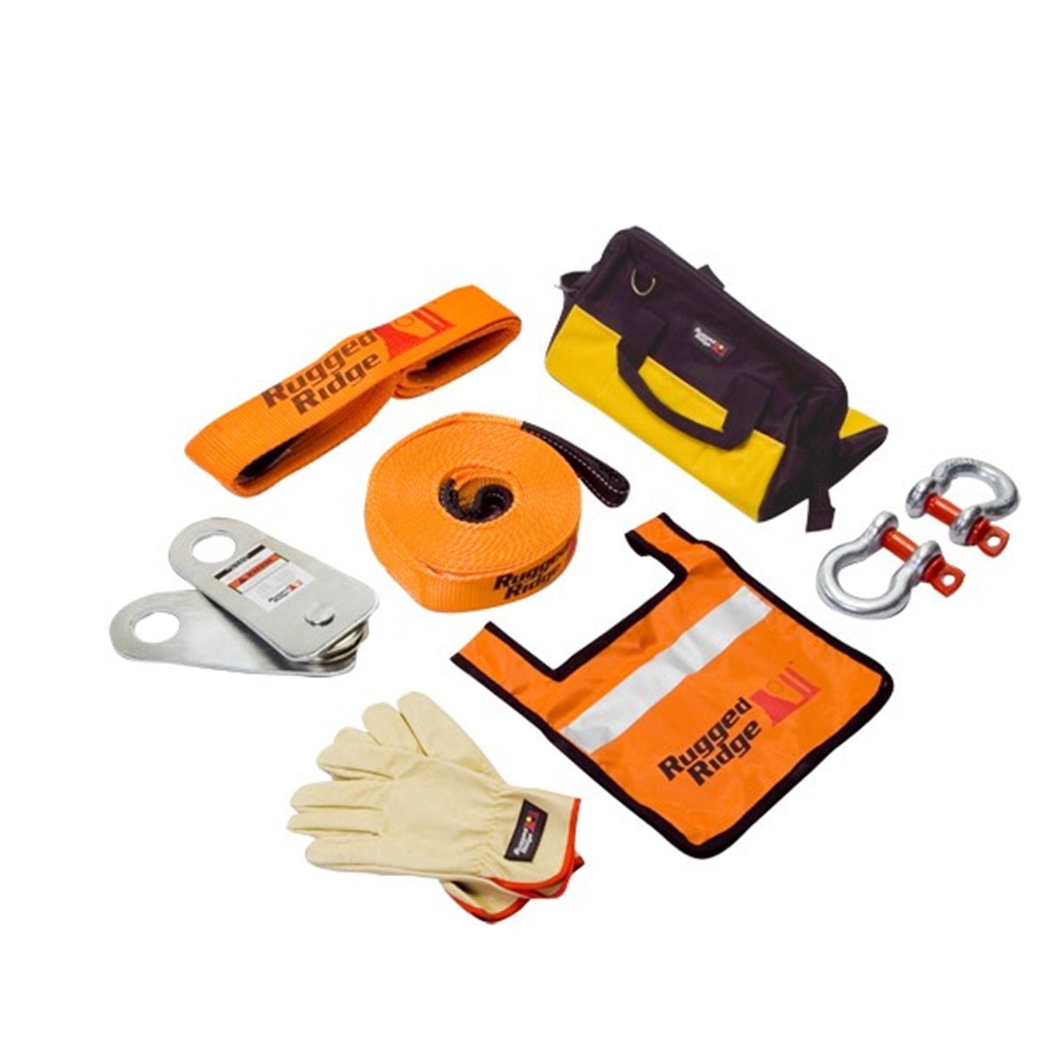 Durable Recovery Gear Bag Heavy Duty 9 in. 30,000lb Snatch Block Pullet Premium 2 in. x 30 20,000lb Recovery Strap. Premium 3 in. x 6 30,000lb Tree Trunk Protector Strap Heavy Duty 9,500lb zinc coated pair of D-Rings Winch Line Dampener Pair of leather Recovery Gloves.
