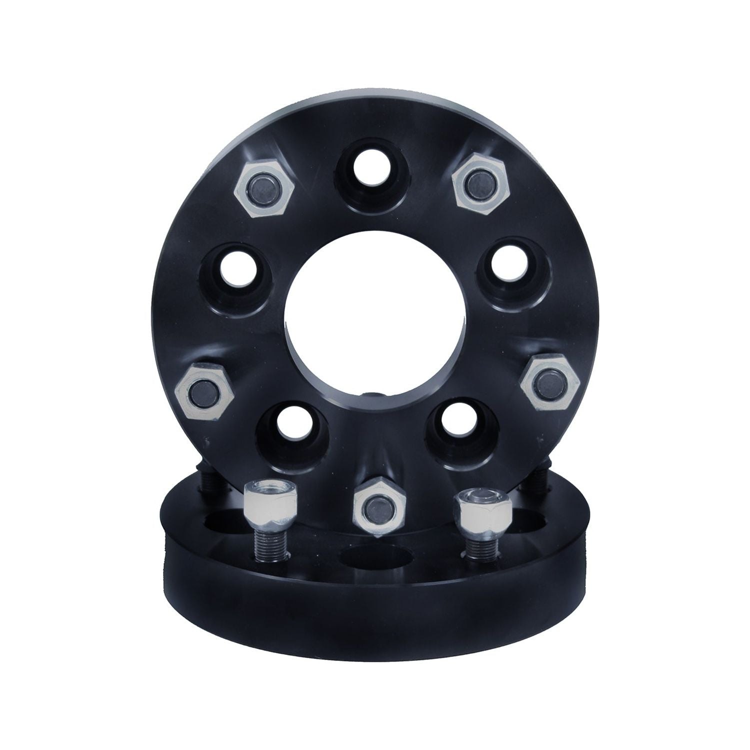 These anodized aluminum wheel adapters convert your bolt pattern from 5 on 4.5 to 5 on 5.5 and move your wheels out 1.25 inches to help fit wider tires and give your vehicle a wider track and improve stability. Constructed of double anodized red extra thick machined aluminum for long life and extra corrosion resistance. All hardware is grade-8 for extra strength.
