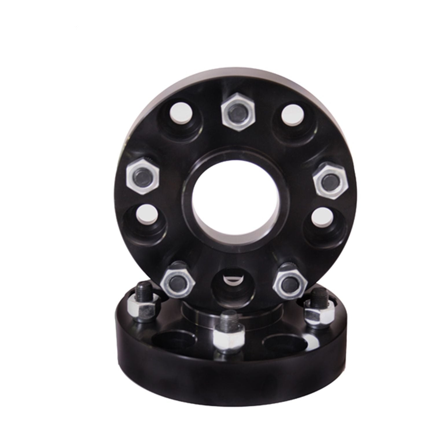 These anodized aluminum wheel adapters convert your bolt pattern from 5 on 4.5 to 5 on 5.5 and move your wheels out 1.375 inches to help fit wider tires and give your vehicle a wider track and improve stability. Constructed of double anodized black extra thick machined aluminum for long life and extra corrosion resistance. All hardware is grade-8 for extra strength.