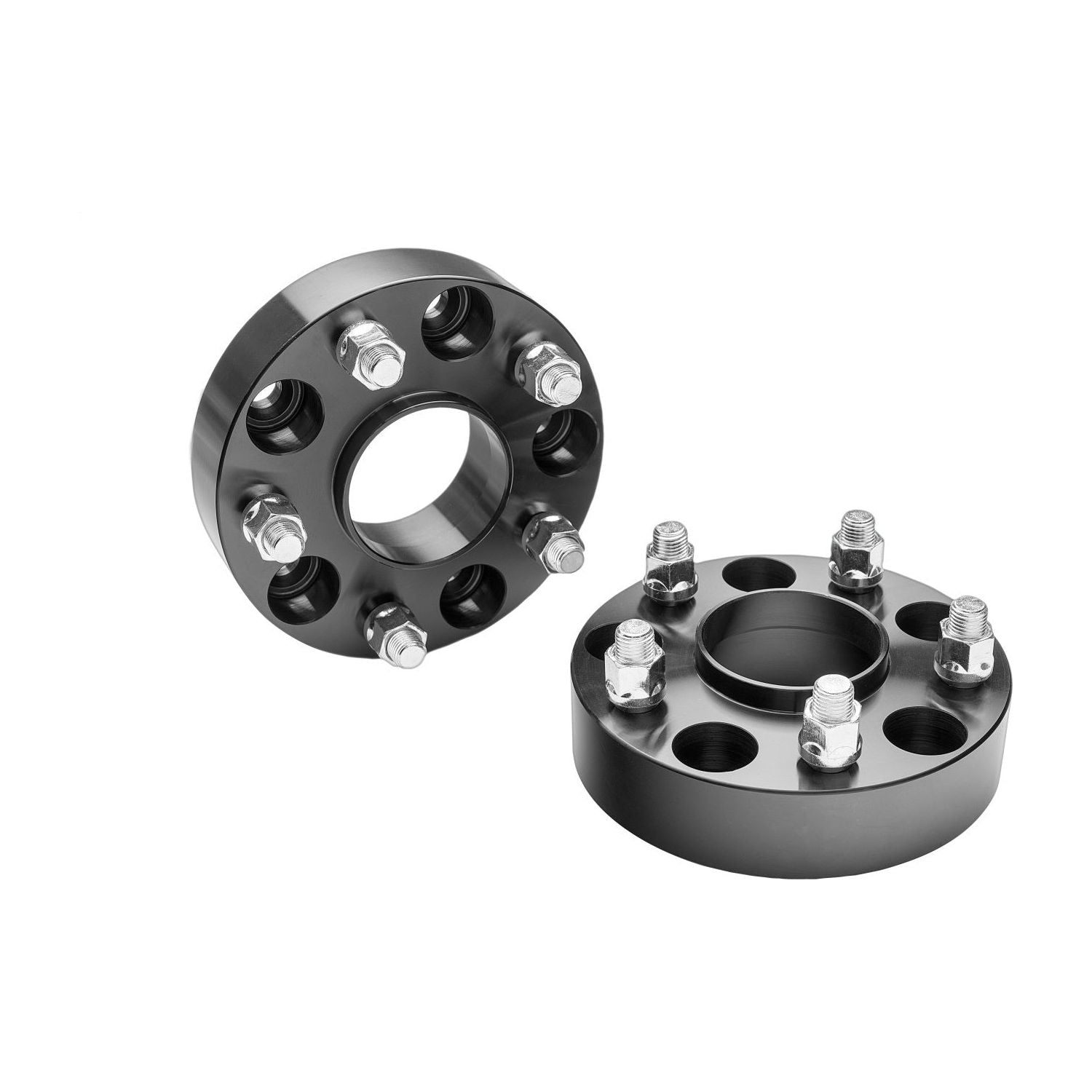 Need to move your wheels out for a little extra space? This set of black hub-centric 1 in. (25 mm) wheel spacers from Rugged Ridge has a 120 mm bolt pattern and 64 mm center bore. The hub-centric construction ensures the wheel is precisely centered on the axle, minimizing stress on wheel studs, and eliminating the added road vibration common with non-hub-centric designs. Installing these spacers will help fit wider tires, giving your vehicle a wider track and improved stability. Constructed of double anodized extra thick 6061-T6 aluminum for long life and extra corrosion resistance. All hardware is grade-8 for extra strength.