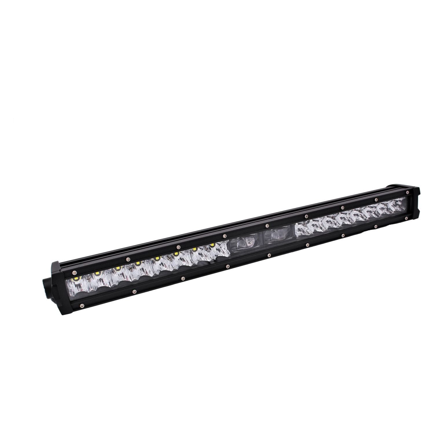 The 20- in. Single Row LED Light Bar from Rugged Ridge is a great way to equip your rig with night-cancelling illumination in a neat and efficient package. This single row night vision LED bar features a matte black cast aluminum housing that is IP68 waterproof rated for dependable performance in the harshest conditions. Highly efficient OSRAM LEDs create a wide flood output of 5,092 raw lumens ideal for off-road driving, yet with a minimal 4.04-amp consumption, you've got the power to run all your other accessories. Includes wiring harness, relay, rocker switch, #304 stainless brackets, and hardware.