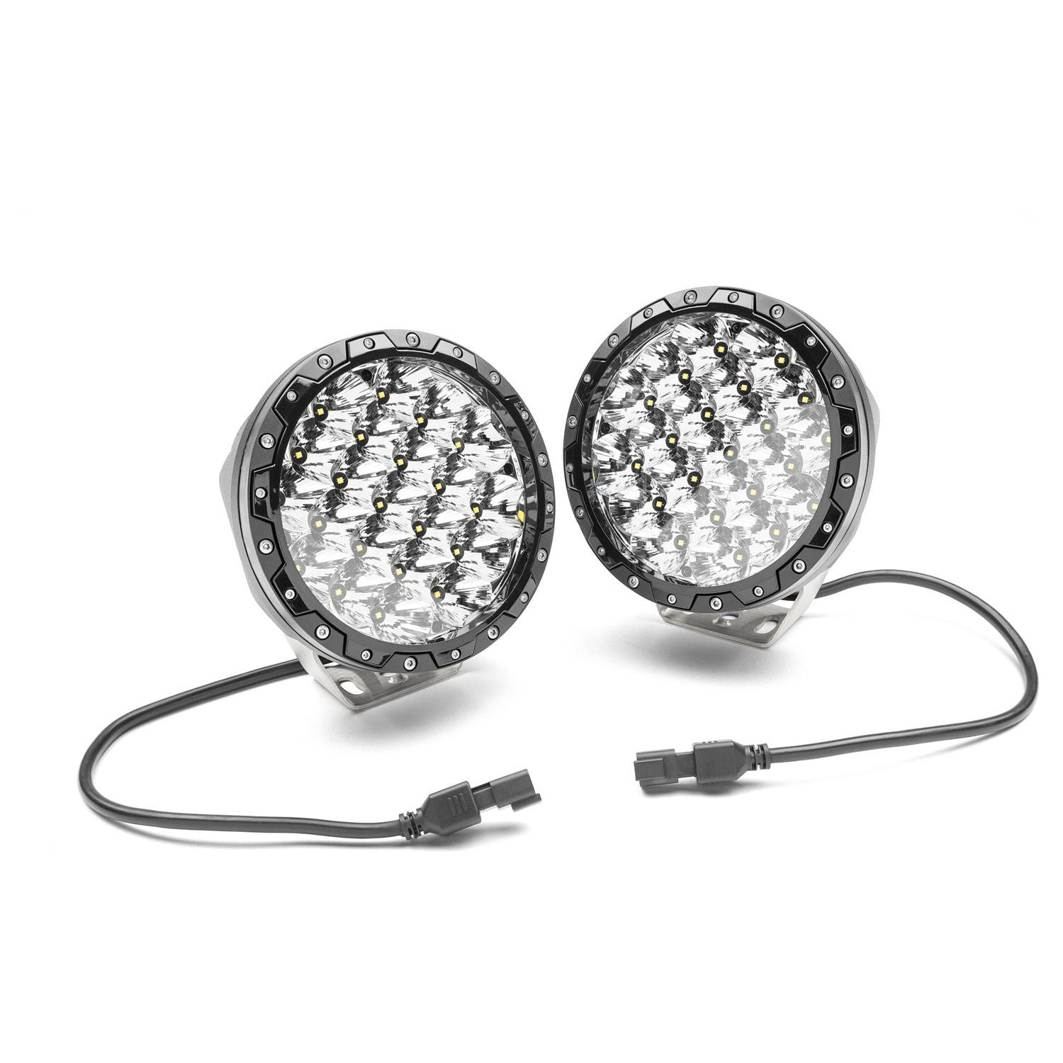 The 7- in. Round LED Driving Light Pair from Rugged Ridge is a great way to equip your rig with night-canceling illumination in a neat and efficient package. This compact 7- in. LED driving light features a matte black cast aluminum housing that is IP68 waterproof rated for dependable performance in the harshest conditions. Highly efficient OSRAM Oslon LEDs create a driving beam output of 12,956 raw lumens and a 959-meter range, yet with a minimal 3.6-amp consumption, you've got the power to run all your other accessories. Includes wiring harness, relay, rocker switch, #304 stainless brackets, and hardware.
