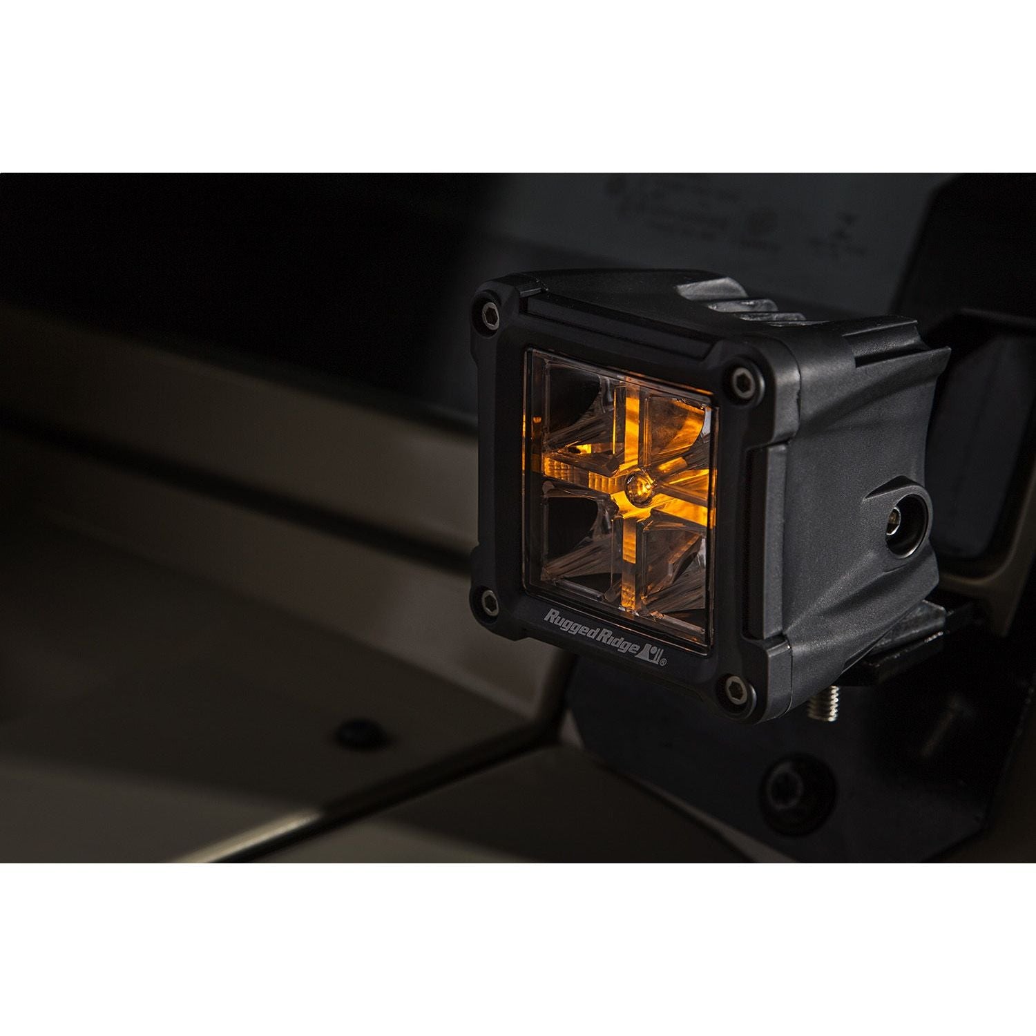 No Jeep or off-road vehicle is complete without a full array of off-road lights and no light is more efficient at lighting your path than an LED. Rugged Ridge now offers an innovative LED light that provides that searing nighttime illumination accented by a functional and cool-looking running lamp allowing you to be seen without blinding other drivers. Each LED is constructed of a virtually indestructible black thermoplastic case that houses four bright white high-beam LEDs with a single center-mounted amber low-beam LED illuminating a unique 'cross-hair' designed reflector giving you greater visibility in low light conditions. With a high-quality Fresnel optic lens and an IP-67 Waterproof rating, these LEDs are built to provide years of outstanding performance making them the perfect complement to your existing light package or as a standalone lighting option. Rugged Ridge Combo LED Lights are available with Cube or Round housings to fit any application or suit any taste.