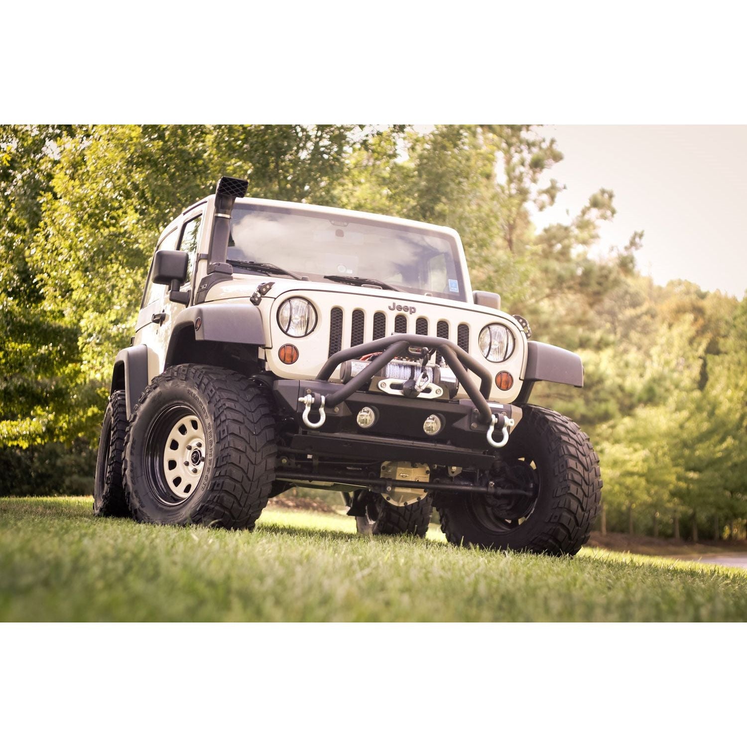 Dusty trail rides and crossing over deep water --anyone who takes their rig off-road is likely to encounter these conditions. The patented Modular XHD Snorkel System from Rugged Ridge relocates the vulnerable stock air intake location to help reduce dust clogged filters and the risk of hydro-locking your engine. This snorkel is the first snorkel designed with the modular functionality of a Pre-filter Low Mount and Ram High Mount air intake design. Unlike other snorkels, you do not have to give up flexibility for functionality. Not only did we engineer our snorkel to allow the windshield to fold and doors to be removed, we built it for use with our dual battery tray, windshield light bar and windshield light mounting tabs, because what good is having a snorkel to cross the river, if you have to leave your lights and the dual battery (to power your Winch) on the other side? Note: Windshield light mounting tabs only compatible with low mount.