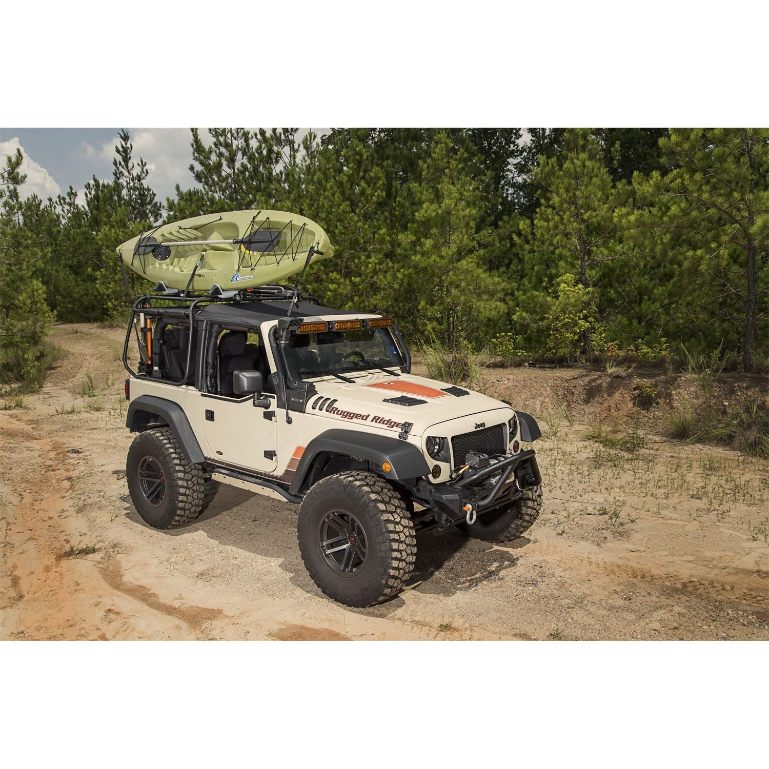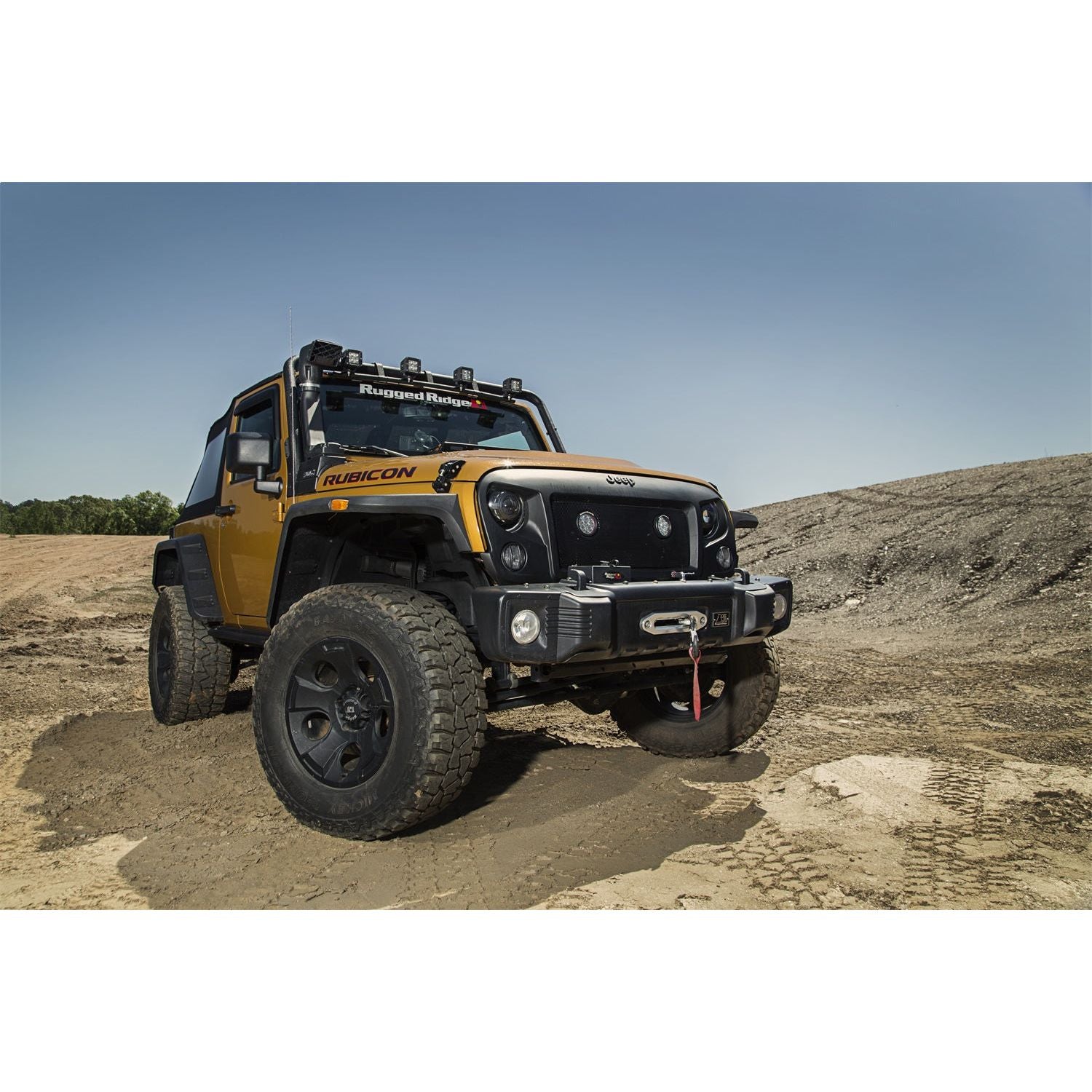 Dusty Trails Rides and Deep Water Fordings. Anyone who takes their rig off-road is likely to encounter these conditions. The new Modular XHD Snorkel System from Rugged Ridge relocates the vulnerable stock air intake location to help reduce dust clogged filters and the risk of hydro-locking your engine. It is also the first snorkel designed with the modular functionality of a Pre-filter Low Mount and Ram High Mount air intake design. Unlike other snorkels, you dont have to give up flexibility for functionality. Not only did we engineer our snorkel to allow the windshield to fold and doors to be removed, we built it for use with our dual battery tray, windshield light bar and windshield light mounting tabs. Because what good is having a snorkel to cross the river, if you have to leave your lights and the dual battery (to power your Winch) on the other side? Note: Windshield light mounting tabs only compatible with low mount. The Modular XHD Snorkel System comes standard with the Pre-filter Low Mount. The Pre-filter Low Mount relocates the air intake to just below the windshield and draws cool air from outside the hot engine compartment. The optional Ram High Mount design allows the air intake to be extended up an additional 21 in. to the top of the windshield. The two air intake mounts are easily interchangeable to give you the modular functionality best suited to your needs. The system is manufactured from premium thermoformed plastic, mandrel bent aluminum and hi-temp silicone connection hoses. Built in manual drain valves channel away excess water to prevent it from entering the intake system. It installs with minor modification to the fender, but without the major cutting and surgery that other kits require. The new lower air cleaner box installs in place of the factory unit, so you dont have to hack and tap. Just attached the factory upper air box, chose from the Pre-filter Low Mount or High Mount design and go! Patents D687,071 and D687,072.