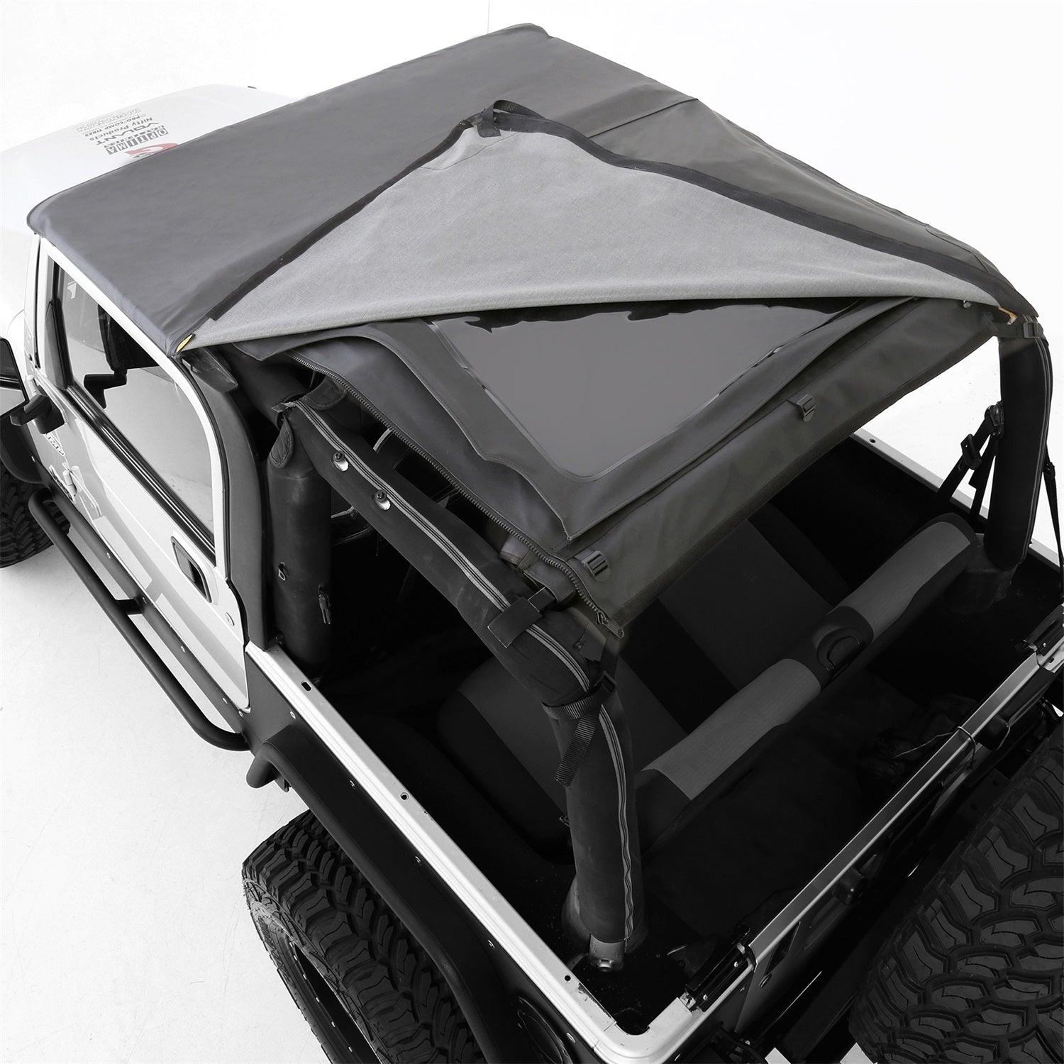 The Bowless Combo Top From Smittybilt Is The Most Adaptable Jeep Top On The Market. If You'Re Hitting The Trail And Clouds Roll In Unexpectedly You Can Quickly Transform Your Jeep So It Is Protected With A Weatherproof Full Top. When The Sun Returns, Simply Zip Out The Side And Rear Windows And You'Re Back To Crawling In The Open Air Again. Added Conveniences Includes The Internal Storage ComparTMents, Molle Attachment Straps And Easy Access, Internal Storage Of Your Side And Rear Curtains. This Top Requires The Use Of The Factory Door Surrounds And Tailgate Bar, As Well As A Header Windshield Channel (Sold Separately).
