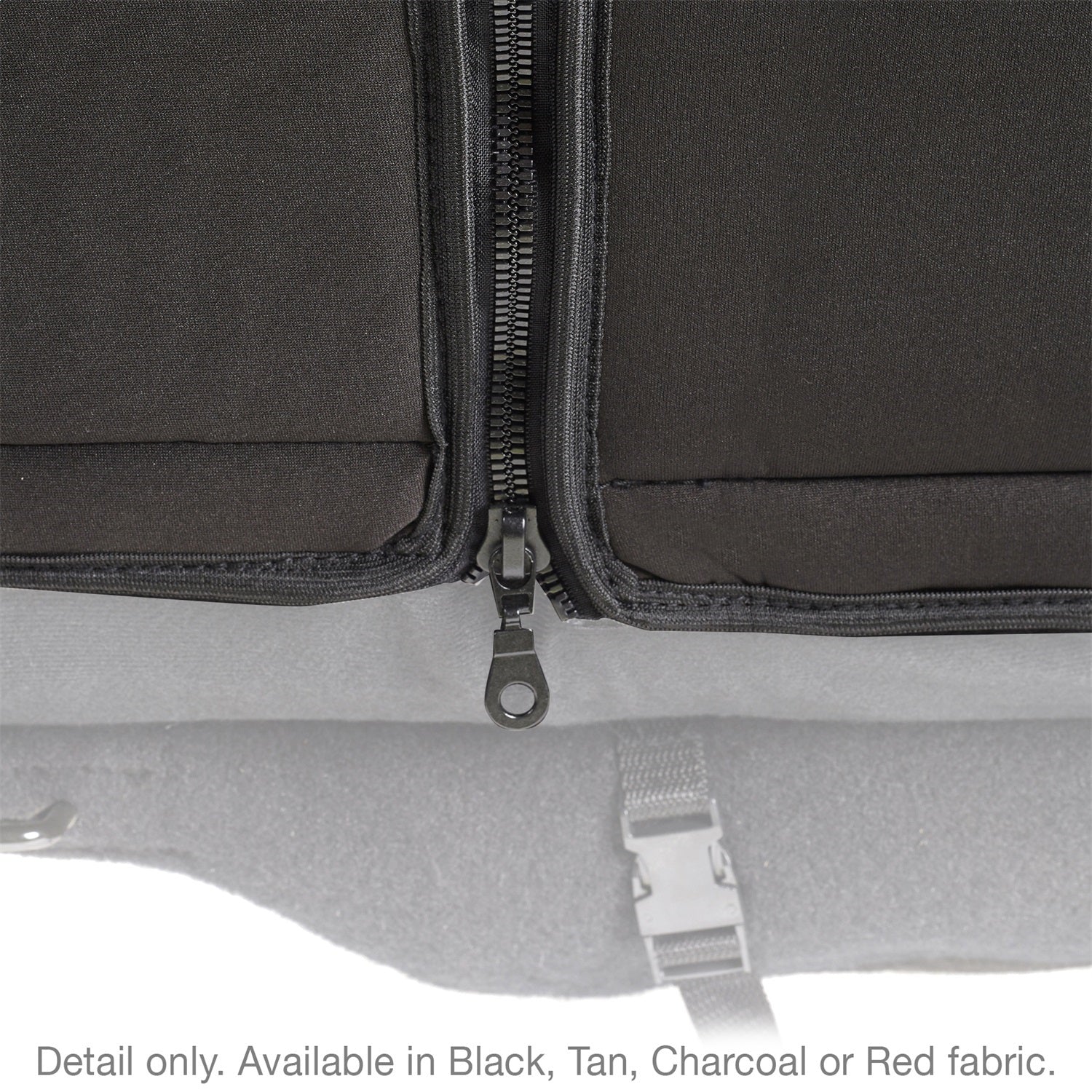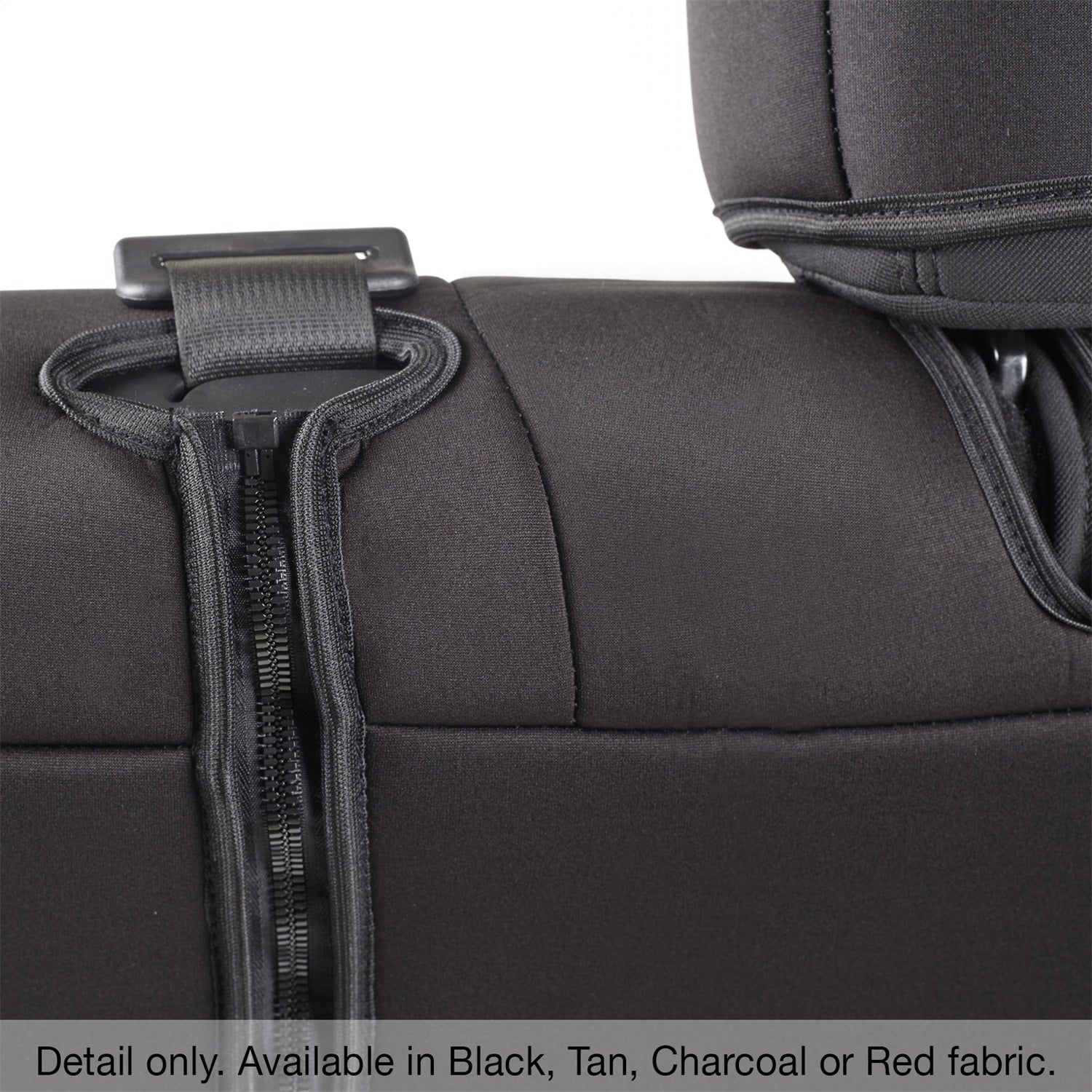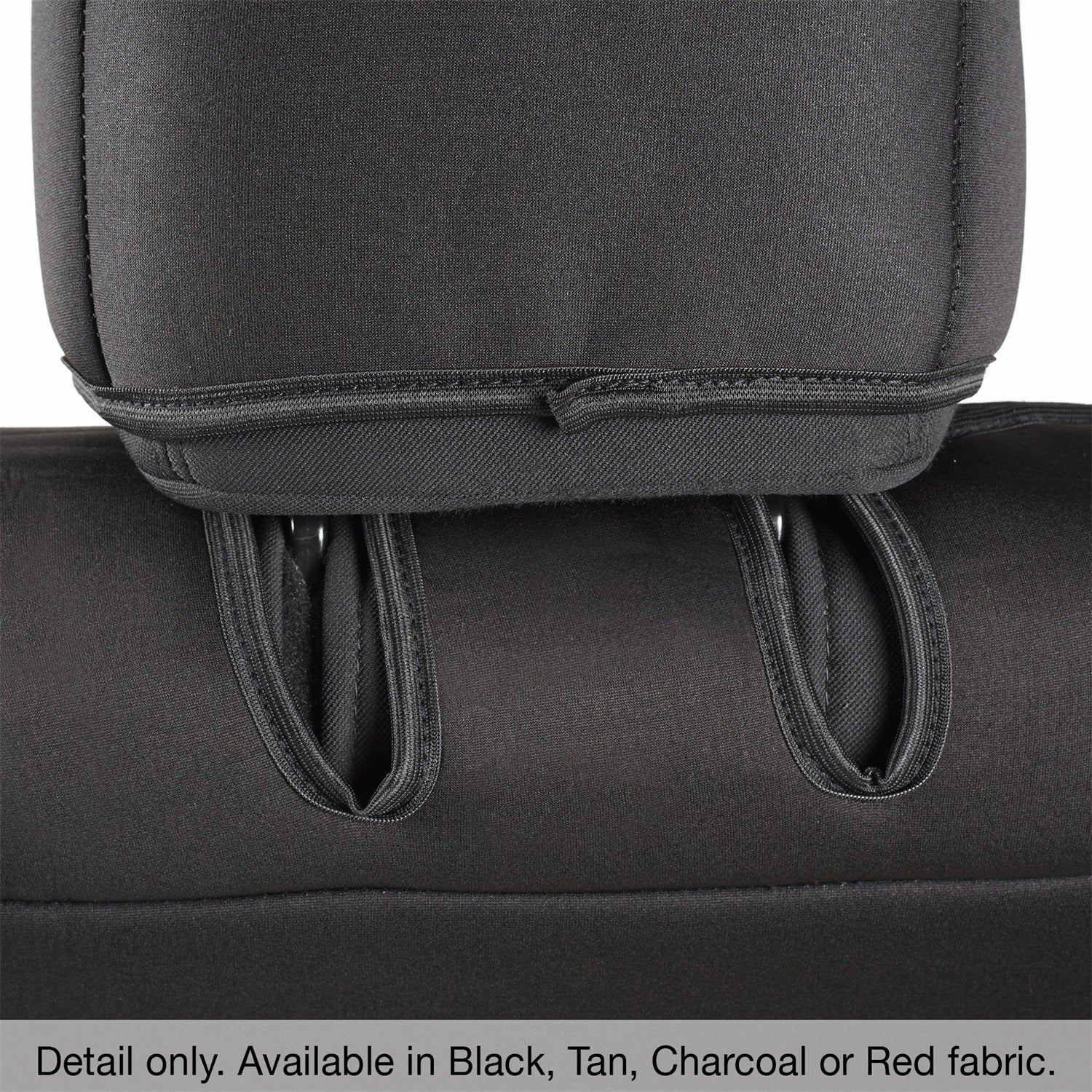 Constructed from 100% durable Neoprene and Codura materials for long life and the ultimate in protection. Center section is padded and pleated for comfort and seat protection. The front covers include a rear map pocket on them and they are easy to install with no tools required. Available in (01B) Black/Black, (21G) Black/Gray, (24T) Black/Tan, (30R) Black/Red. Seat covers are machine washable in gentle cold and hang to dry.