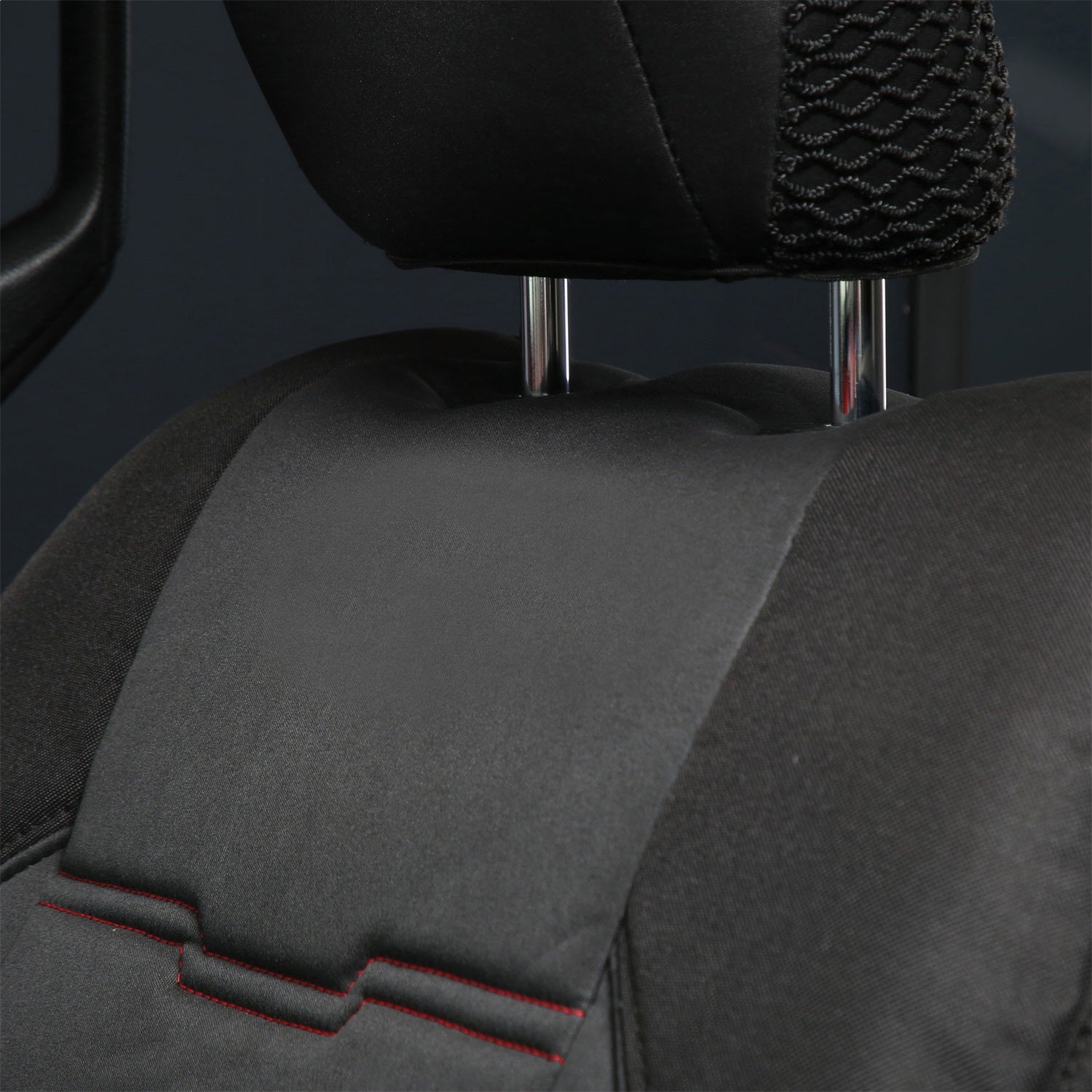 Constructed from 100% durable Neoprene and Codura materials for long life and the ultimate in protection. Center section is padded and pleated for comfort and seat protection. The front covers include a rear map pocket on them and they are easy to install with no tools required. Available in Black/Black, Black/Gray, Black/Tan and Black/Red. Seat covers are machine washable in gentle cold and hang to dry.