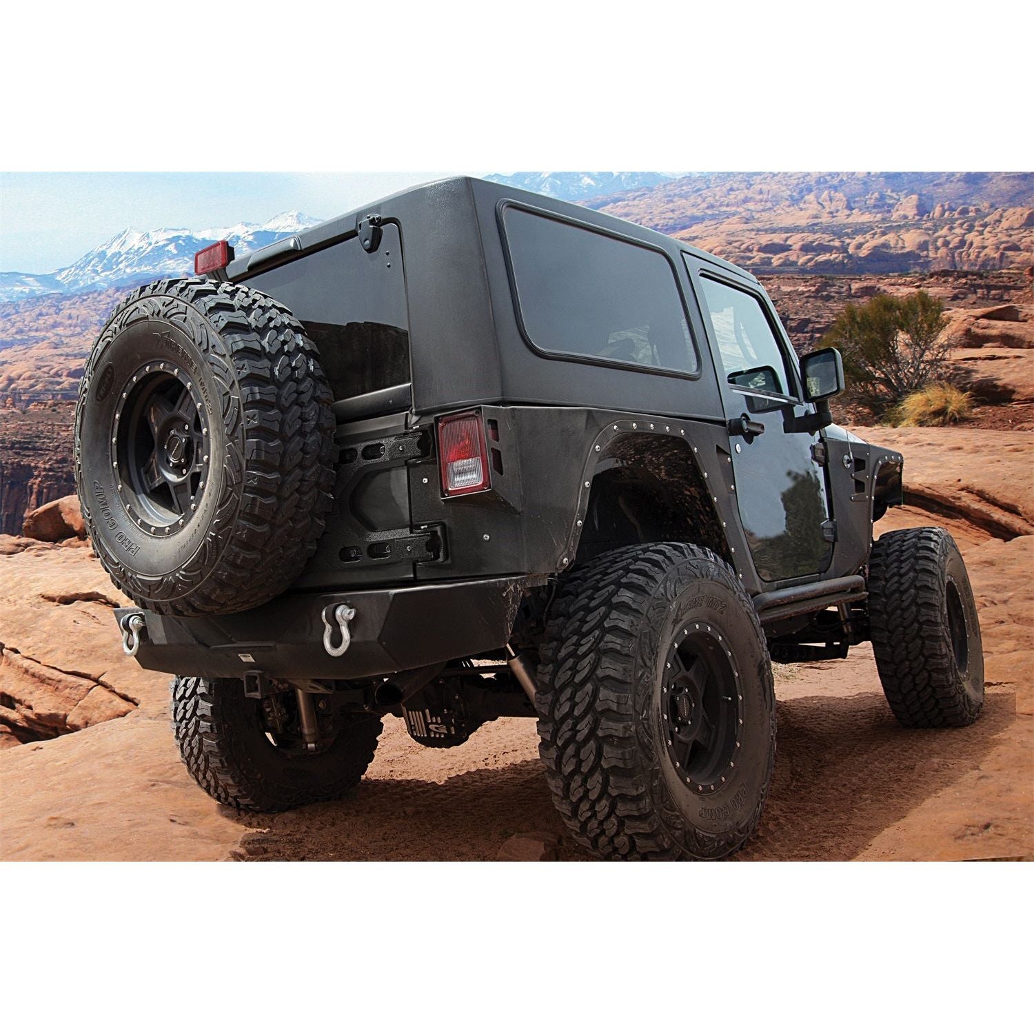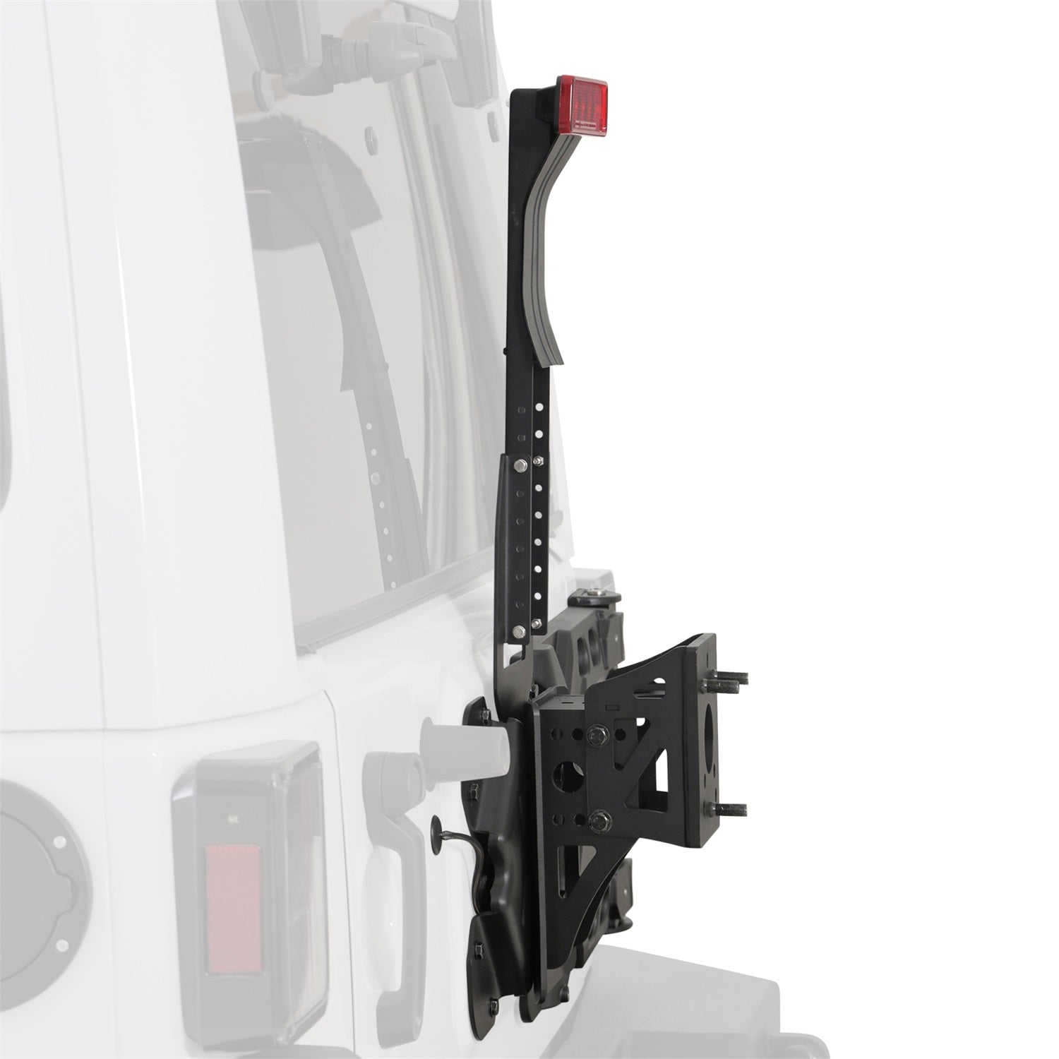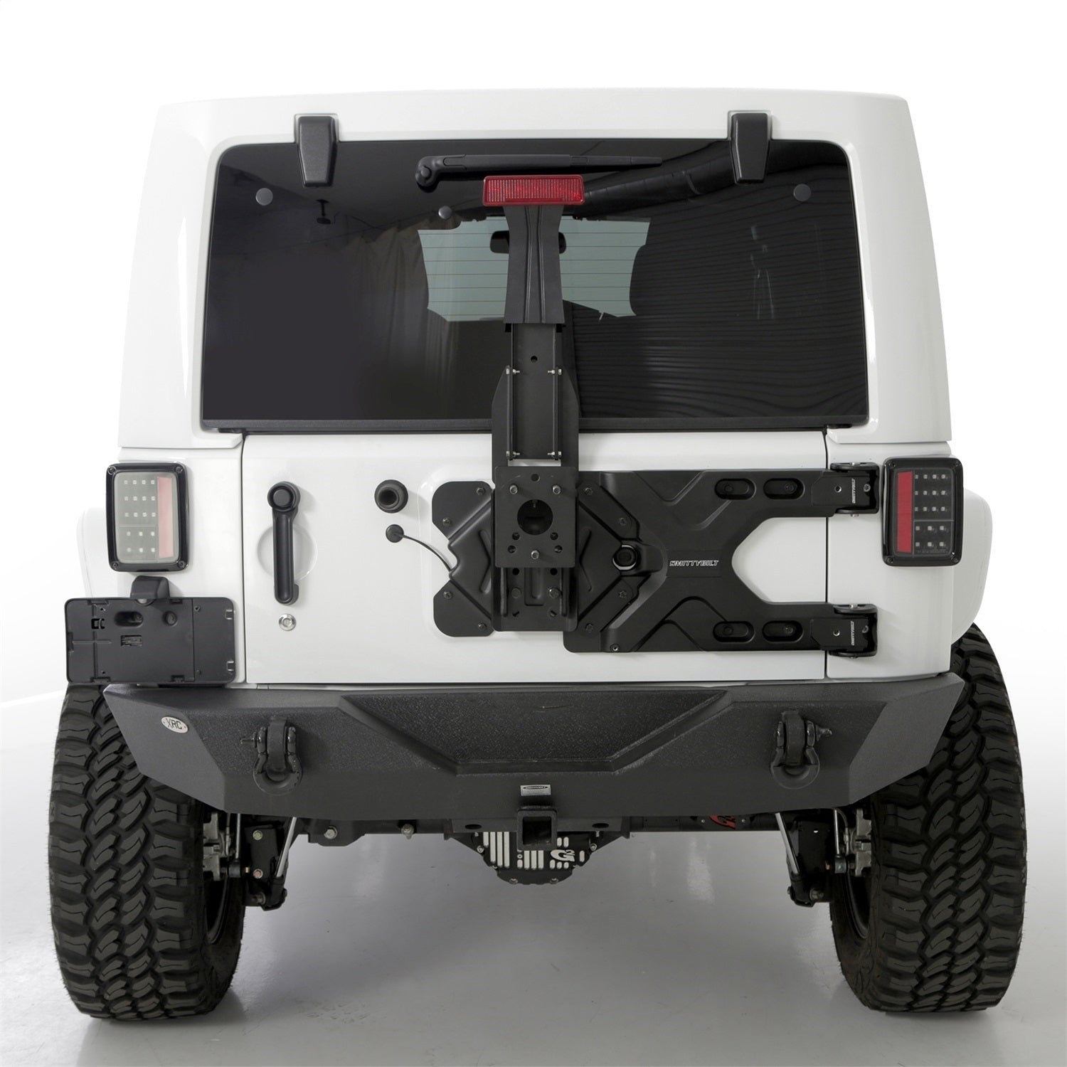 If you like your rear bumper, but want to mount an oversize spare on your Jeep Wrangler JK, Smittybilt has the solution with the Pivot Heavy Duty Oversize Tire Carrier. Designed to hold up to a 37" Tire, this tire carrier solution bolts on without drilling, and does not interfere with OEM or aftermarket bumpers that do not already have a tire carrier.