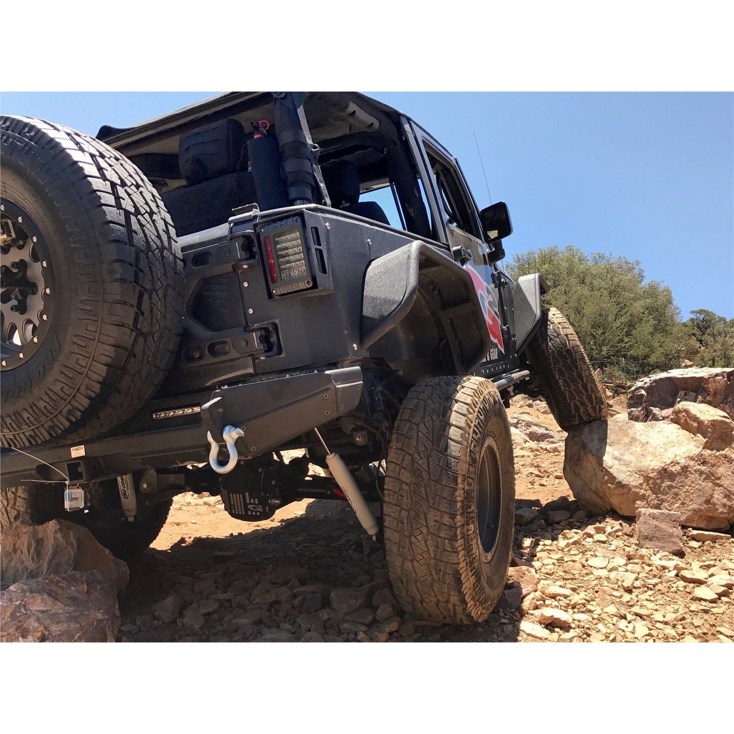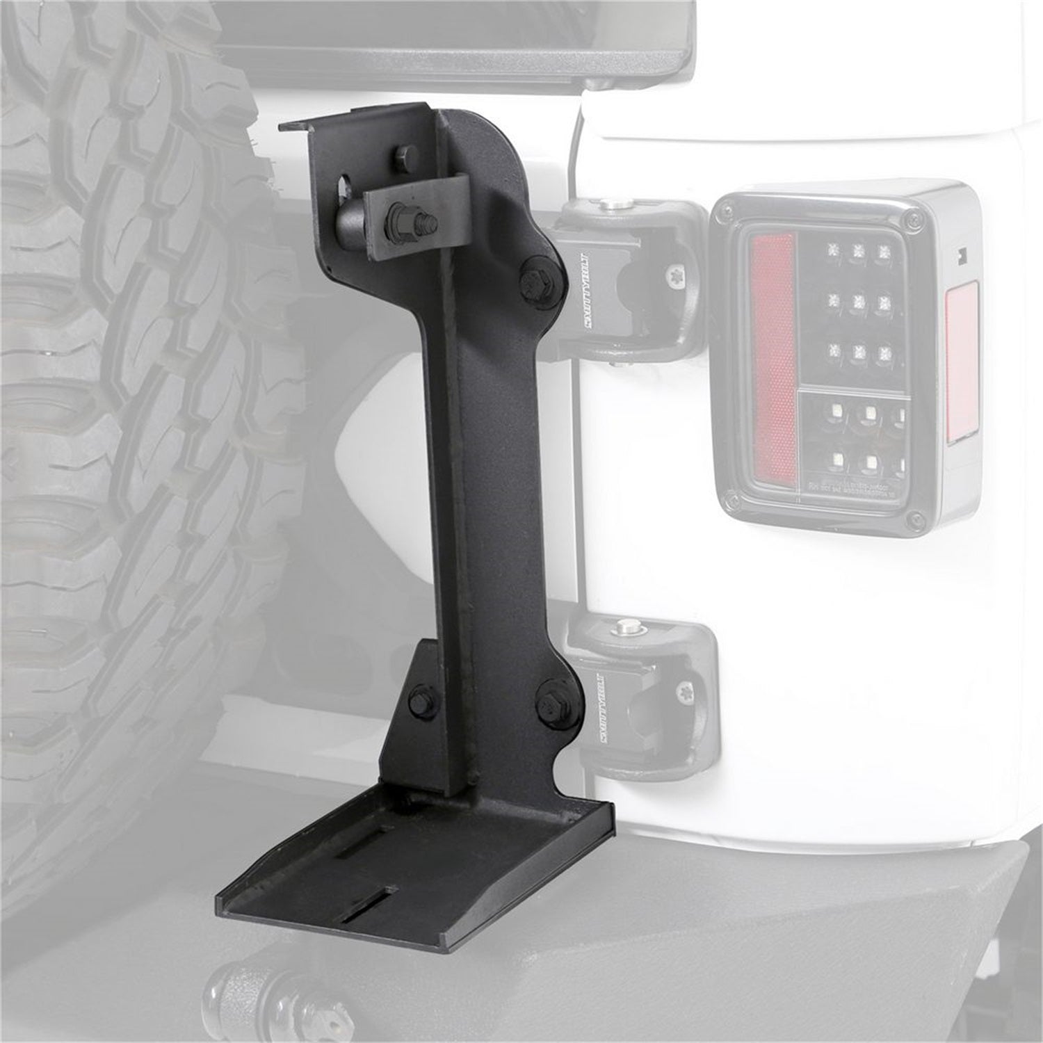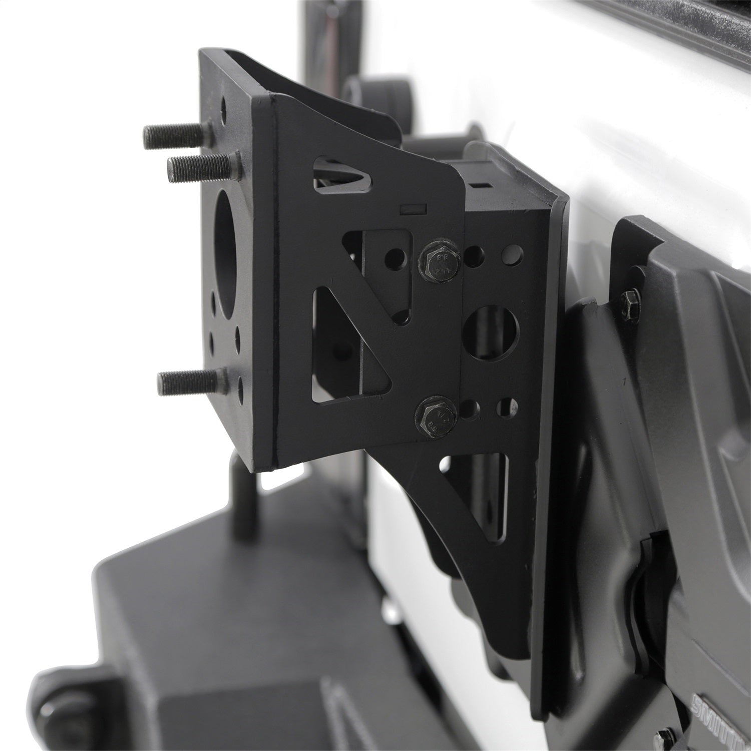 If you like your rear bumper, but want to mount an oversize spare on your Jeep Wrangler JK, Smittybilt has the solution with the Pivot Heavy Duty Oversize Tire Carrier. Designed to hold up to a 37" Tire, this tire carrier solution bolts on without drilling, and does not interfere with OEM or aftermarket bumpers that do not already have a tire carrier.