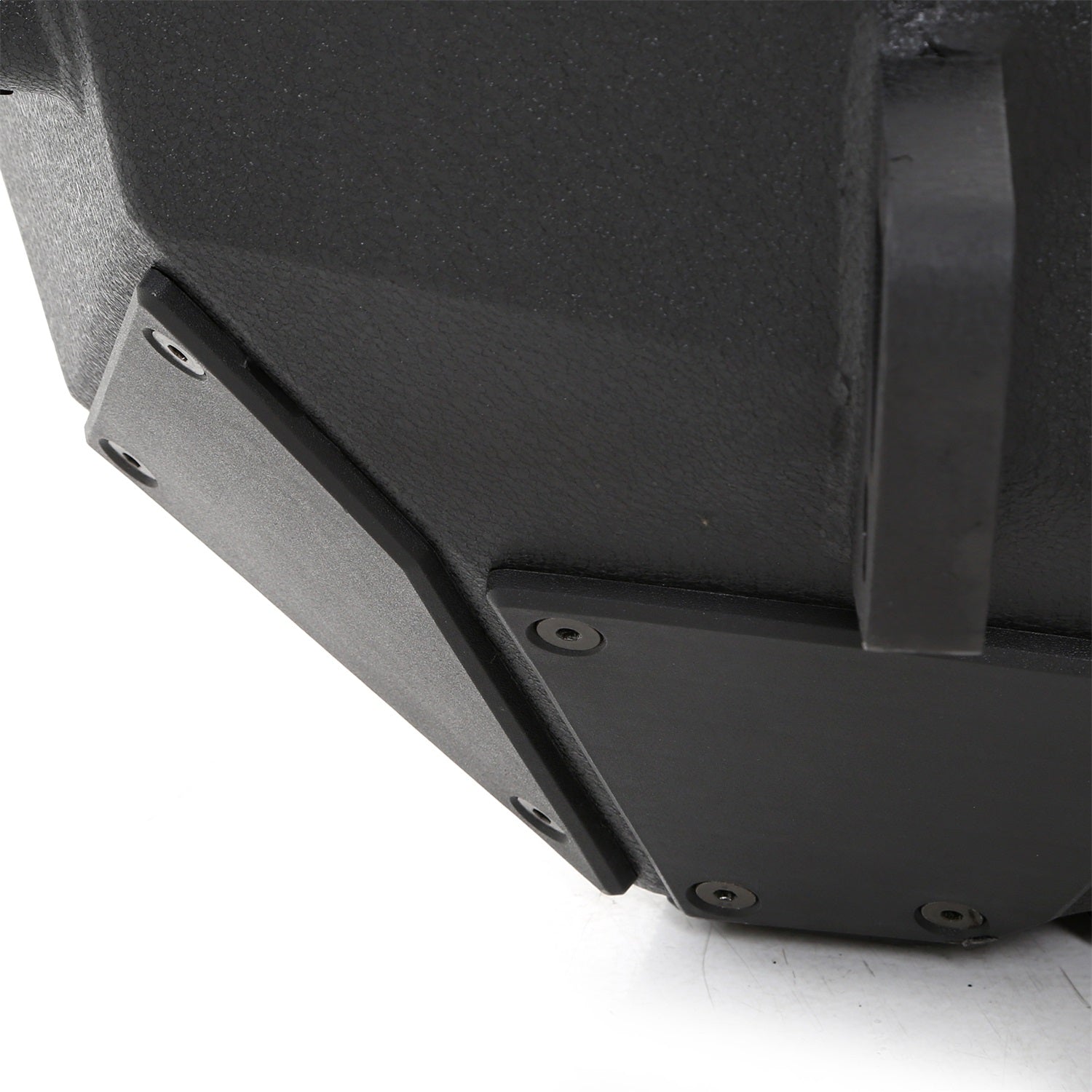 The new Smittybilt SRC front bumper has been completely redesigned with more aggressive styling and heavy duty features. The new bumper features an integrated over-rider bar and corners that extend to match the factory fender line for greater protection. The redesigned solid D-ring mounts feature an integrated recovery point for easy access. The winch plate has been placed lower for greater airflow to the radiator.
