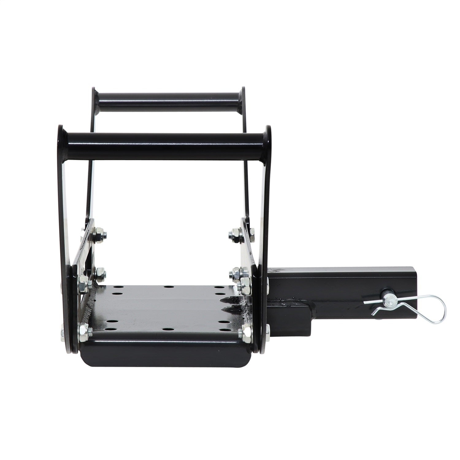 Attaching A Winch To Your Vehicle Just Got Easier With Smittybilts New Winch Cradle. This Heavy Duty Unit Gives You A Variety Of Mounting Options For Front Or Rear Installation Because It Works With Any 2" Receiver Hitch. Its Designed To Accommodate Most Winches And Includes A Mounting Plate For Your Roller Fairlead. The Smittybilt Winch Cradle Is Constructed From Thick 3/16" And 1/4" Cold Rolled Steel And Is Finished In A Durable Two Stage Satin Black Finish For Maximum Durability.