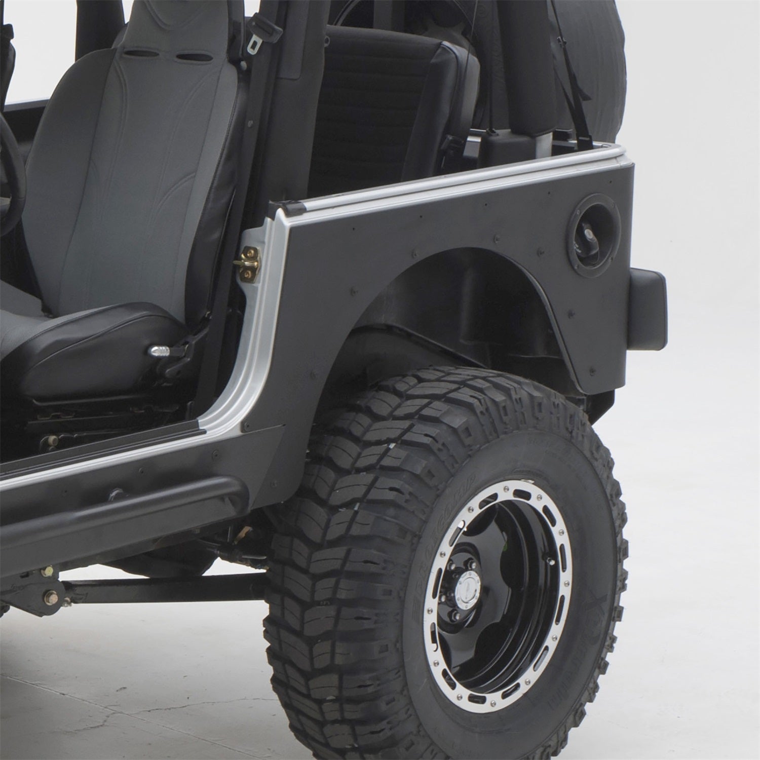 Manufactured From 3/16" Cold Roll Steel And Hand Crafted To Insure A Perfect Fit Every Time. Optional 3" Flare Extension Available, See Part Number 76875. Stainless Steel Hardware Included. Includes Cutouts For Factory Tail Lights And Fuel Filler. Finished In A Black Powder Coat. Can Be Used With Rocker Sliders. Drilling Required.