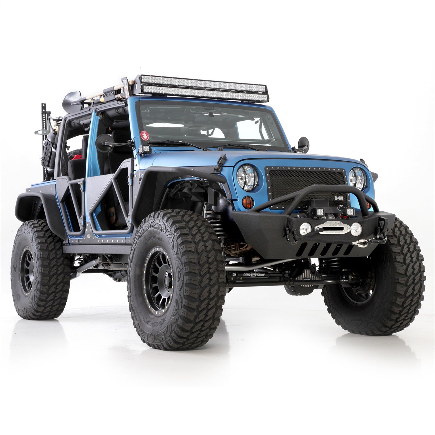 With an updated look that is sure to be a hit with Jeep owners, the next generation XRC front bumper was designed to meet the needs of off road enthusiasts. The new bumper features raised corners that allow greater approach and departure angles, perfect for vehicles running over sized tires. The New bumper now allows the use of the OE fog lights. The redesigned solid D-ring mounts feature an integrated recovery point. The winch plate has been placed lower for greater airflow to the radiator. The new over-rider is 1.75" diameter and has integrated mounts for additional lighting.