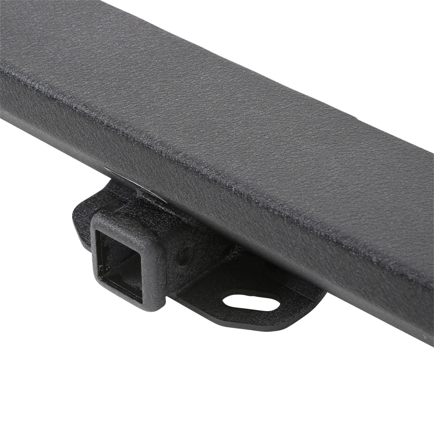 The Rear Bumper Is Manufactured Out Of 3/16" Cold Rolled Steel And Comes Standard With A Built In Class III Receiver Hitch And Two Solid D-Ring Mounts That Are Welded On The Inside And Out For Maximum Strength. Bumper Is Designed To Accept The Smittybilt Swing Away Tire Carrier #76654.The Swing Away Tire Carrier Can Be Added To The Bumper At Any Time.