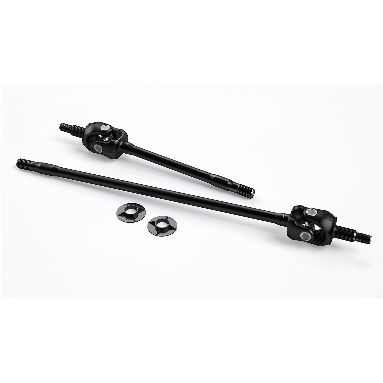 Replace your weak stock front axle shafts with a set of heavy-duty TeraFlex Axle Shafts! Comes assembled with our 32-spline Front Outer Stub Shafts and Spicer 1350-Series (Rubicon) U-Joints.