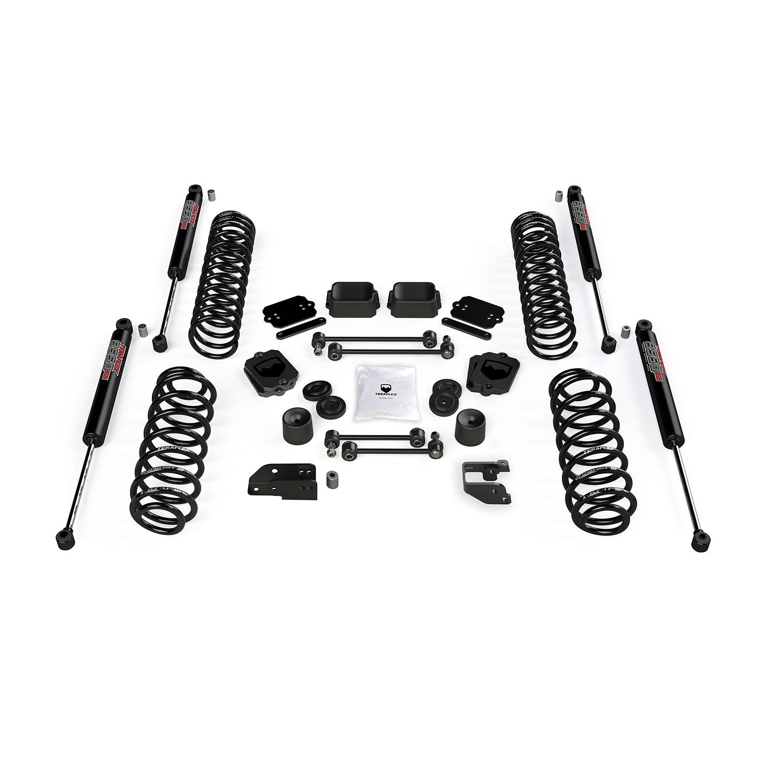 TeraFlex 3.5 Inch Coil Spring Base Lift Kits include just the basic lift components only and do not have the drivability of a full suspension system. Requires longer Front Lower Sport Control Arms, or Front Control Arm Sport Brackets, or adjustable short or long Alpine (IR) Control Arms, and Front and/or Rear HD Forged Adjustable Track Bar(s) to correct suspension geometry.