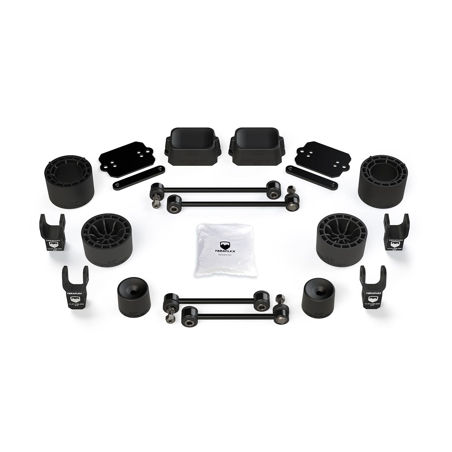 The TeraFlex JL 4dr Rubicon: 2.5 Inch Performance Spacer Lift Kit w/ Shock Extensions is the most economical way to fit larger tires and increase ground clearance on your JL Wrangler Unlimited Rubicon with the least amount of modifications.