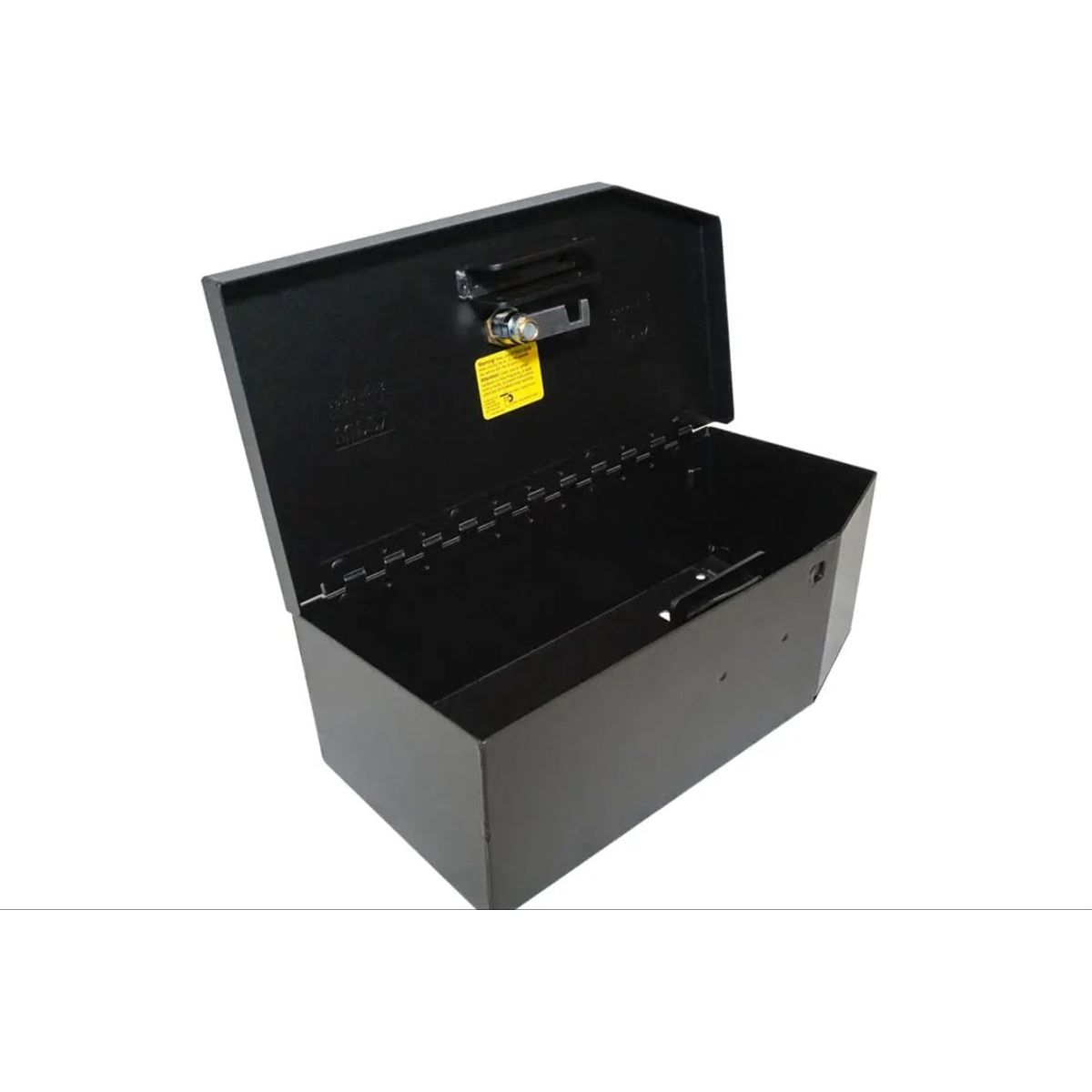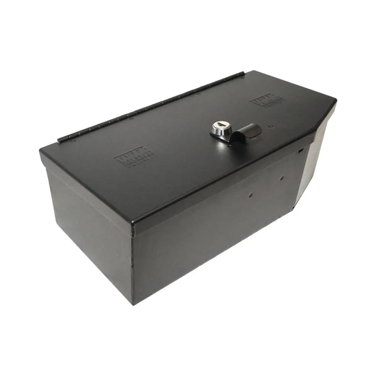 This high security steel lockbox mounts under the rear seat in Jeep Gladiator. The compact form of the Tuffy lockbox can be descretly installed within the OEM plastic fence and has sufficient lockable storage to conceal valuables best left unseen to prying eyes. It’s secured contents are easily accessed by flipping of the driver’s side rear seat up and opening the secured lid. Tuffy’s Pry-Guard Locking System with a 10 tumbler double bitted security lock with built in weather seals will keep your valuables secure while you enjoy your adventures.
