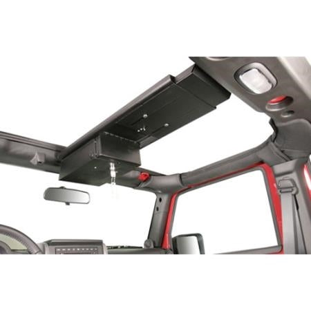 This 16 gauge steel overhead security console has one lockable