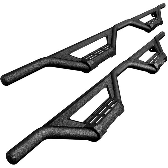 - HEAVY-DUTY MATERIAL CONSTRUCTION - Made of heavy-duty carbon steel molded into the patented drop step tube structure. Dual stage E-coating powder textured black finish bolsters these side bars with improved rust and corrosion resistance.