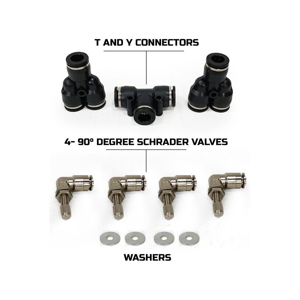 Introducing our Gen2 Air Delivery System (ADS) for your Jeep JK and Jeep JK Unlimited that allows you to inflate or deflate all four tires simultaneously which makes managing tire air pressure quick and easy. Our system can manage air through an on-board permanent air source with dedicated air inlet or through portable air pump that can attach through an external Schrader valve. Each kit comes complete with DOT approved 3/8” air line throughout the system, whips with quick connect chucks with our Betty Bar feature, ADS control box with air regulator and 90-degree Schrader valves. Our Gen2 system is designed specifically for your application with precut hoses and quick connect fittings to make the installation fast and easy.