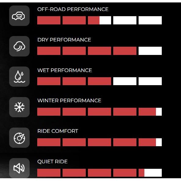 Asymmetrical tread block geometry ensures high levels of highway performance without compromising off-road capabilities.