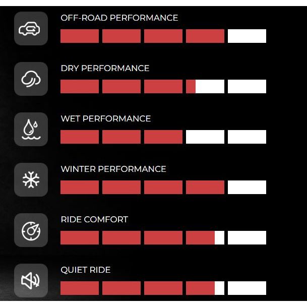 Optimized void-to-lug ratio ensures unparalleled traction in extreme off-road conditions such as mud, snow, sand, and rocky terrain