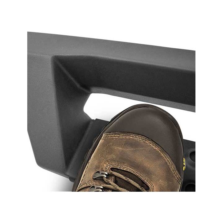 Westin's HDX Drop Nerf Bars, recognized as ‘Best New Exterior Accessory Product’ by SEMA, offer truck enthusiasts a perfect blend of style and function. Made from robust 1-piece stainless or mild steel, they promise durability, and provide over 2 extra inches of toe/heel space compared to competitors. With a textured black finish, corrosion-resistant coating, and die-stamped stainless steel step areas, they enhance both aesthetics and functionality alike.