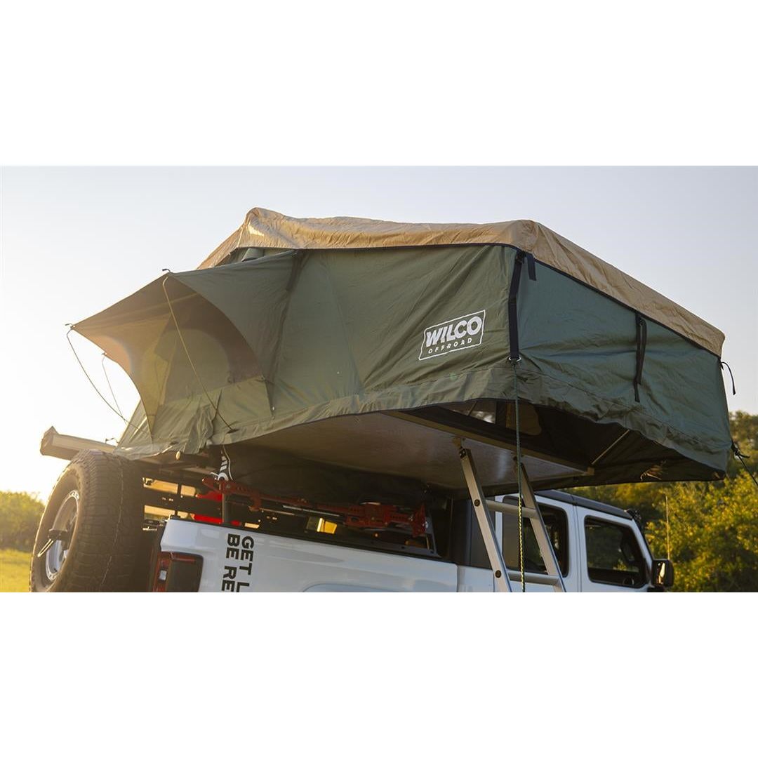 Elevate your overland experience with the XP3 Roof Top Tent from Wilco Offroad. Made with lightweight aluminum and durable rip-stop fabric, this tent is built for every adventure. Compared to standard ground tents, the EXPLR tent offers a comfortable and dry sleeping option no matter the terrain. Simply pull up to camp and open up your tent. No moving rocks around to make for a comfortable tent floor. When it’s time to hit the trail, just fold up the tent and zip up the cover and you’re ready for adventure. Easily attaches to roof racks, bed racks, or even adventure trailers.