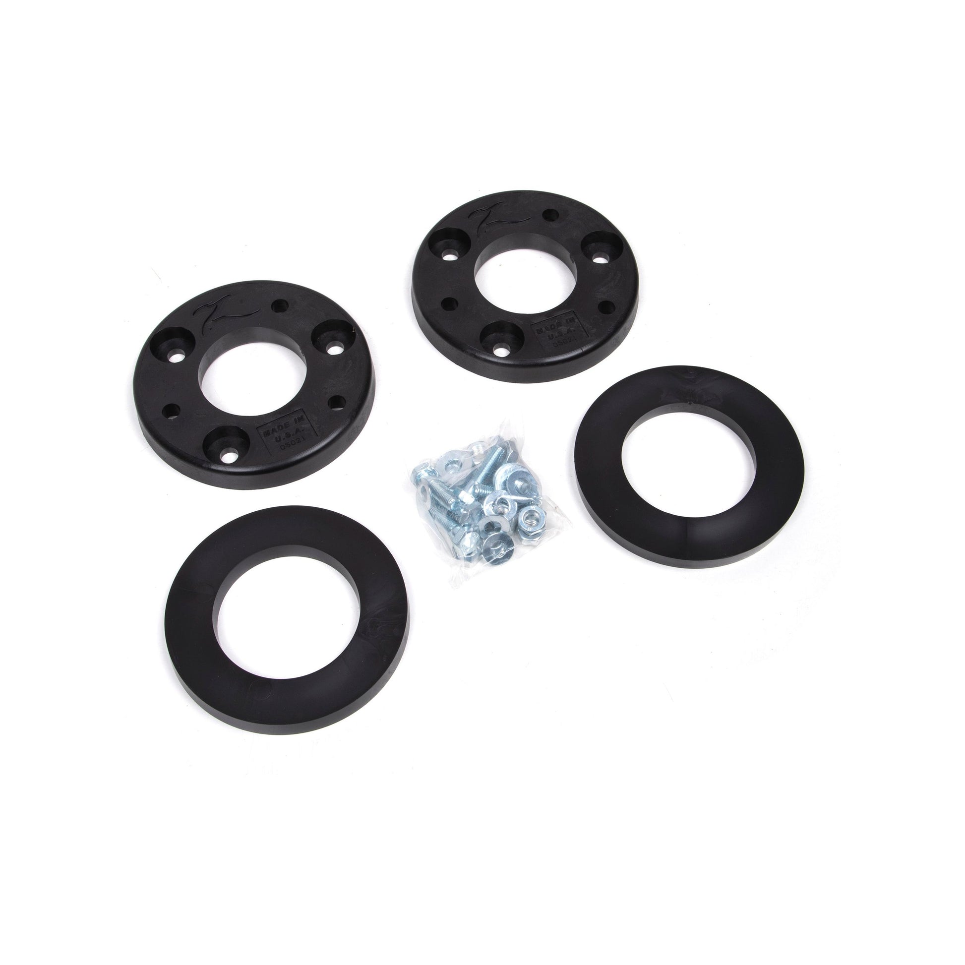 Level out the stance of your 2021-2024 F150 truck with this 2" leveling kit from Zone Offroad. Designed for proper function and handling, this kit includes 2-piece top mount and strut mount spacers, mounting hardware and step-by-step instructions. Get the look your truck deserves, while maintaining ride quality with clearance for up to 33" tires.