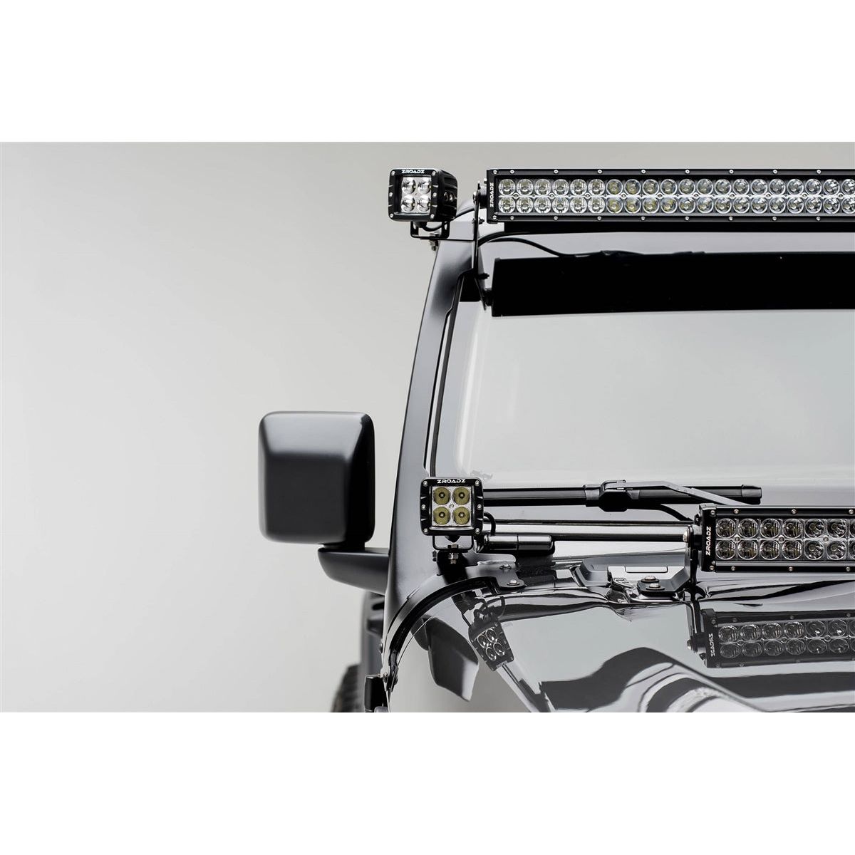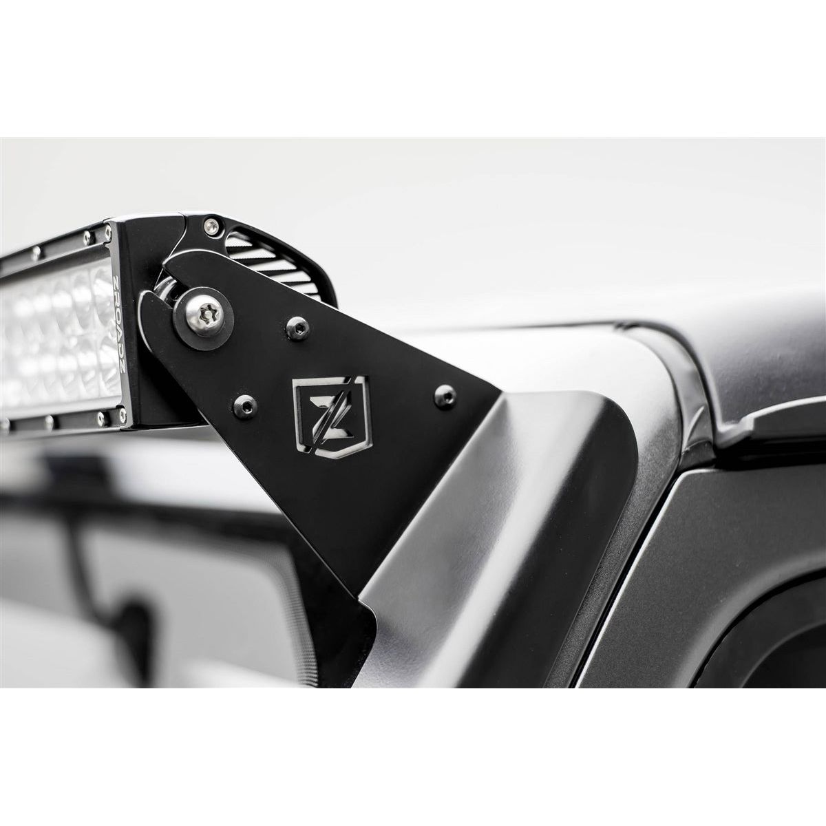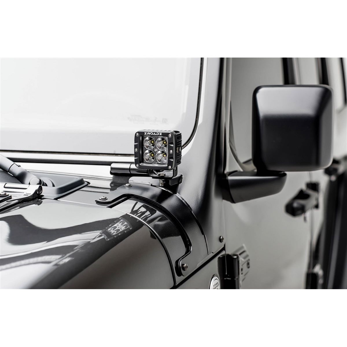 ZROADZ Jeep Wrangler Roof LED Mounts are the most robust roof mount light brackets on the market. Manufactured from laser cut 1/8" mild steel, and formed on engineered metal stamping dies. This industry exclusive design allows the roof brackets to contour to the A-Pillar of your Jeep and provide a clean appearance when installed. ZROADZ roof brackets and kits feature heavy duty solid rubber gasket for a secure and vibration free installation. ZROADZ Roof LED Mounts are available in complete kits with light and wiring harness, or as brackets only for mounting common and popular LED light bars. ZROADZ Front Roof LED Mounts are designed and made in USA.